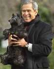 Президент Джордж Буш-младший также известен своей любовью к животным. Любимой собакой Дж. Буша является шотландский терьер по кличке Барни. На сайте президентской резиденции у Барни есть своя персональная страница, на которой размещены самые интересные его фотографии. Здесь также можно посмотреть 4 видеоклипа с участием Барни. До недавнего времени у президента Буша была еще другая собака - английский спаниель по кличке Спот. Однако не так давно Спота пришлось усыпить. На тот момент ему было уже больше 15 лет и он страдал от разных старческих болезней. Этот президентский пес прославился тем, что стал единственной собакой, которая жила в Белом доме при двух администрациях. Дело в том, что Спот родился от собаки Джорджа Буша-старшего, когда тот был хозяином Белого дома. В настоящее время в президентской резиденции вместе с семейством Бушей помимо терьера Барни проживает еще 10-летний черный кот Индия. Кроме того, на своем ранчо в Техасе Джордж Буш также держит любимую корову по кличке Офелия.