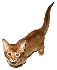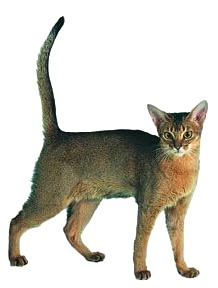 Абиссинская кошка средних размеров, стройная. Шерсть короткая, тонкая, плотно прилегает к коже. Масть разнообразная, но чаще встречается красно-коричневая с черной или темно-коричневой прострочкой, темно-красная, голубая. Отдельные волосы могут быть по цвету двойными или даже тройными. Голова небольшая, клиновидной формы, с сильным подбородком. Нос прямой, средней длины. Переход от лба к морде слабо заметен (без "стопа"). Уши сравнительно крупные, вертикально поставленные, с широким основанием и закругленными концами с кисточкой волос. Брови и веки темные. Глаза большие, выразительные, широко и слегка косо поставленные, обычно зеленые, желтые, цвета лесного ореха. Тело крепкое, мускулистое, гибкое, подобранное. Шея короткая, изящная, элегантно изогнутая. Спина мощная, развитая, грудь широкая и достаточно глубокая. Ноги жилистые, крепкие, средние или длинные. Лапы маленькие, овальные. Животное стоит как бы "на цыпочках". Хвост относительно длинный, суживающийся от основания к концу.