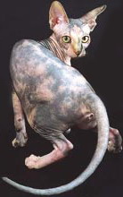 Это кошка - статуэтка. Это мягкие линии тела, магия гармонии, взгляд зеленых глаз прямо в сердце. Это не кошка, это поэзия. Сфинкса нельзя назвать кошкой, это существо, пришедшее к нам с другой планеты. Это воплощение всего лучшего, что есть в живой природе и человеке. Они очень похожи на человека: у них лапки, как ручки, они любят спать под одеялом, уложив розовые ушки на подушку, смотрят прямо в глаза, не отводя взгляда, что не свойственно животным. Это кошка - шок. Первый шок - когда вы впервые видите сфинкса. Никто не остается равнодушным при виде этого удивительного существа. Второй шок - это ощущение горячего, голого, замшевого тельца в ладонях. Кто рискнет взять это существо на руки, уже никогда не выпустит. Третий шок - это магия личности сфинкса. Когда вы общаетесь со сфинксом, то его необыкновенная, экзотическая внешность кажется лишь дополнением, приложением к его удивительному характеру. Это существо не терпит одиночества, оно хочет постоянного общения с вами. Сфинксу необходимо находиться рядом с вами, смотреть на вас, спать, прижавшись всем телом, чтобы его целовали в нос. Это необъяснимо словами, но факт то, что один раз заведя сфинкса, вы уже не измените ему никогда, он навсегда займет в вашем сердце уголок.