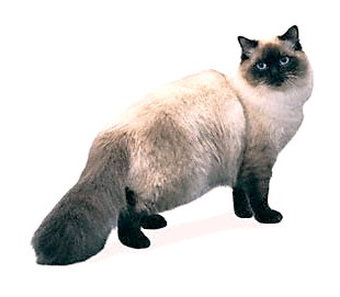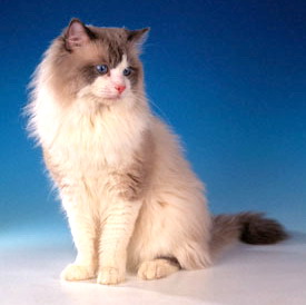 Рэгдоллы - большие (до 9 кг) кошки с длинной шелковистой и практически не сваливающейся шерстью. Хвост длинный и пушистый, клиновидная голова с полными щеками. Глаза круглые, голубые. Имеются три разновидности (двухцветные, колор-пойнт и в "перчатках") в четырех тонах каждая: темно-коричневые ("сил"-котиковые), шоколадные, голубые и лиловые (в США - "морозные"). Шерсть полудлинная, более или менее, в зависимости от сезона, хвост пушистый. Глаза всегда голубые, выразительные, блестящие, усы обязательно белые. Немного сложнее дело обстоит с регдоллами "в перчатках". Они похожи на больших бирманцев на немного слишком высоких лапах, и перчатки на них плоховаты. Одним словом, красивого регдолла в перчатках трудно отличить от бирманца с некоторыми отклонениями от образца.