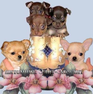 Питомник Элит-Элегант занимается племенным разведением Русских Той-терьеров и Чихуахуа. Племенная работа в нашем питомнике, над породами, ведется в соответствии с нормативами и положениями принятыми в РКФ. Цель нашего разведения: получение здорового поголовья собак высокого уровня, превосходящего по типу своих родителей. Приобретающие щенков в нашем питомнике могут быть уверены, что их щенок получен от родителей действительно обладающих племенной ценностью для породы, и прекрасно выращен. К Вашим услугам профессиональные кинологи, вет.врачи, передержка Вашего питомца на время Вашего отдыха.
