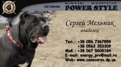 Питомник собак ПИТОМНИК "POWER OF STYLE". Кане корсо . Днепропетровск |
