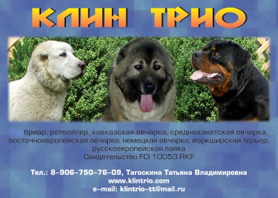 Питомник собак КЛИН ТРИО. Кавказская овчарка Ротвейлер Среднеазиатская овчарка Восточноевропейская овчарка. КЛИН МОСКОВСКАЯ ОБЛАСТЬ |