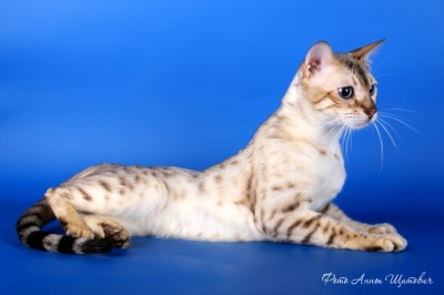 На сайте нашего питомника вы имеете возможность познакомится с бенгальской породой чуточку ближе, узнать о ее характере, особенностях поведения, стандарте, увидеть много фотографий, сделанных с любовью, дающих полное представление о работе нашего питомника, а так же выбрать себе понравившегося котенка. Наши бенгальские котята с раннего детства и на протяжении всей свое жизни привязаны к своему хозяину, они очень нежные и общительные, приучены к лотку и когтеточке. Если Вы заинтересуетесь Бенгальской кошкой или котенком, пожалуйста не стесняйтесь связываться с нами.