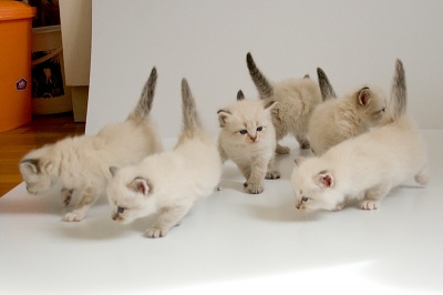 Молодой питомник в г.Минске. Первый помет "М" 22.08.2009 6 котят: 5 мальчиков и 1 девочка. Окрасы: блю табби пойнт с белым, сил табби пойнт с белым, сил табби пойнт