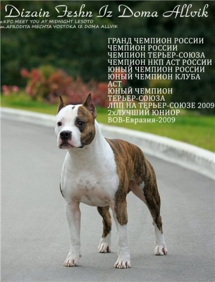 Питомник существует уже более десяти лет и широко известен в России среди заводчиков породы американский стаффордширский терьер.