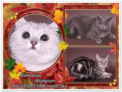 Фото галерею предлагаемых котят к продаже и фото предыдущих помётов в питомнике «Risingsun» (райзингсан)- «Восходящее солнце»,а так же фото галерею наших питомцев, узнать подробнее о породе, содержании, заметки о кошках, контакты, адреса сайтов и страничек о наших питомцах и котятах, полную информацию о питомнике Вы можете посмотреть на страницах наших сайтов http:http://koshki-koti.jimdo.com/