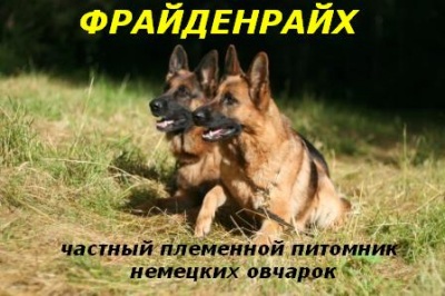 Наши производители (кобели) и Наши производители (суки) – о собаках питомника «Фрайденрайх»: происхождение, титулы, участие в монопородных и всепородных выставках, испытаниях и соревнованиях, полученное потомство и перспективы деятельности.