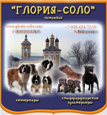 Объявления Питомник собак Gloria-Solo. Сенбернар Стаффордширский бультерьер. Муром