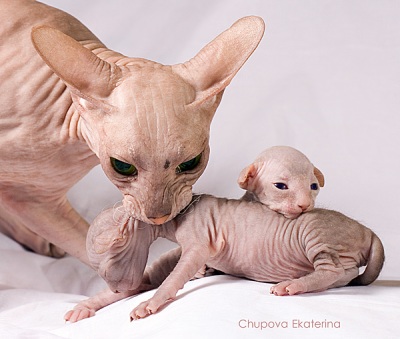 Петербургские сфинксы- это грациозные кошки восточного типа, которые кажутся абсолютно бесшерстными, хотя таковыми полностью не являются. Кошка имеет крепкий тонкий костяк и удлиненное тело и ноги, с тонкой, эластичной, теплой, "замшевой" кожей.