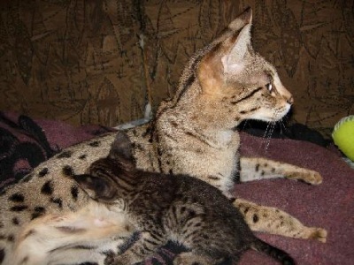 Саванна - новая экзотическая порода, берущая свое происхождение от африканского сервала. Очень крупные кошки с дикой внешностью, но характером домашней. Количество таких животных в нашей стране - единицы.